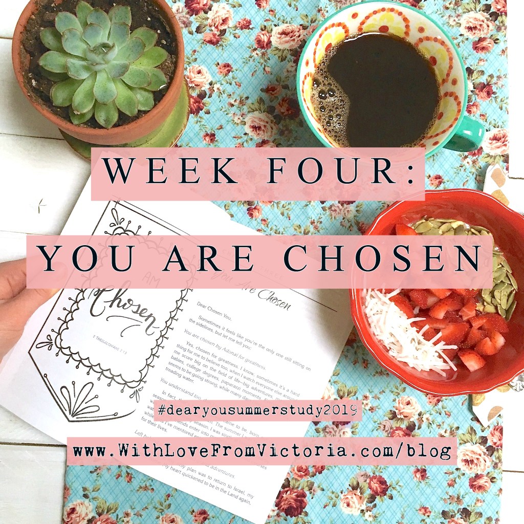 –Take a photo of you reading this chapter in your favorite spot to have quiet time and post it to your IG account (or stories), and in the caption include your favorite Scripture references from this chapter! (Don’t forget to tag @withlovefromvictoriablog and use #dearyousummerstudy2019)