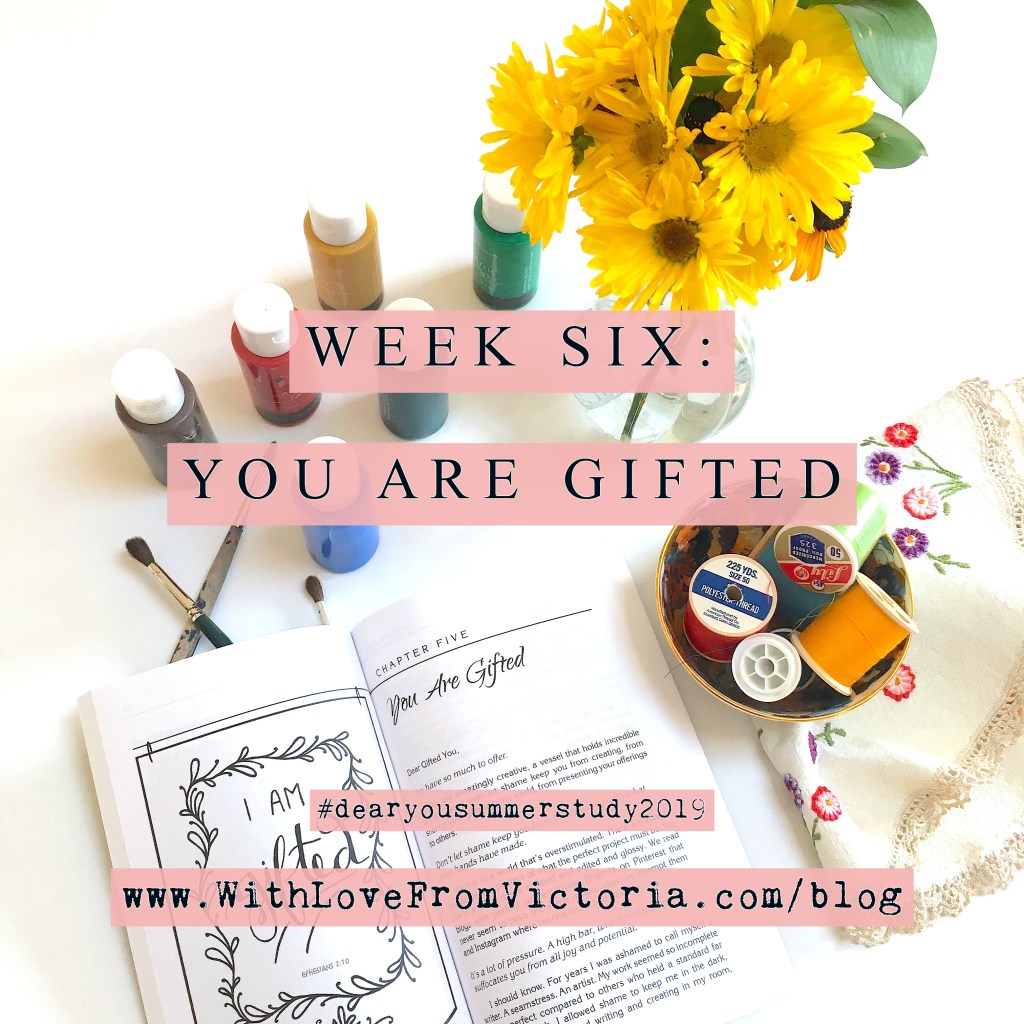 –Take a photo of where you put your sticky note of Matthew 25:21 (question 9, p. 70) and post it to your IG account (or stories), and in the caption include your favorite Scripture references from this chapter! (Don’t forget to tag @withlovefromvictoriablog and use #dearyousummerstudy2019)