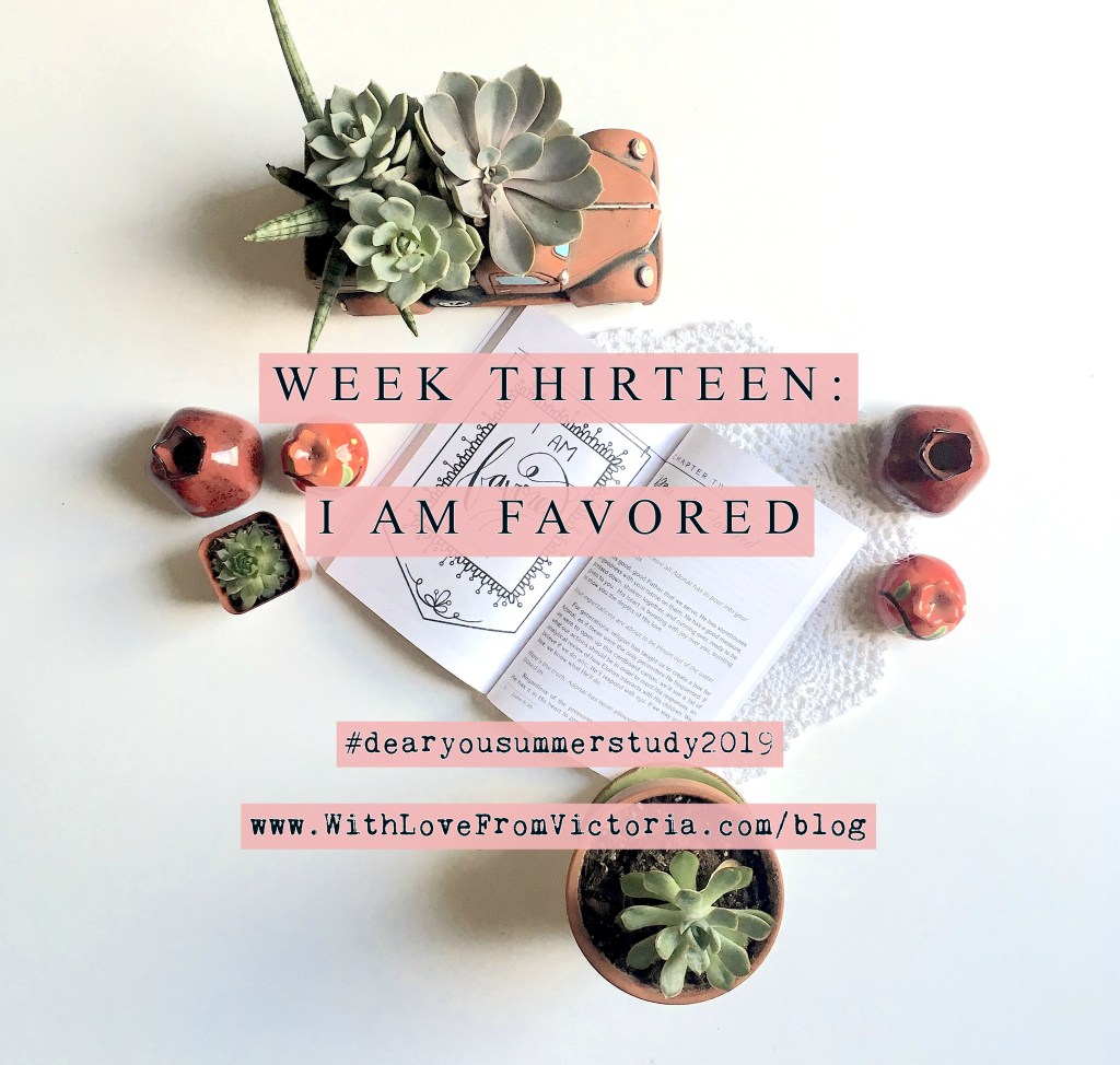 -Share a photo of a “favor moment” and post it to your IG account (or stories). In the caption include your favorite Scripture references from this chapter! (Don’t forget to tag @withlovefromvictoriablog and use #dearyousummerstudy2019)