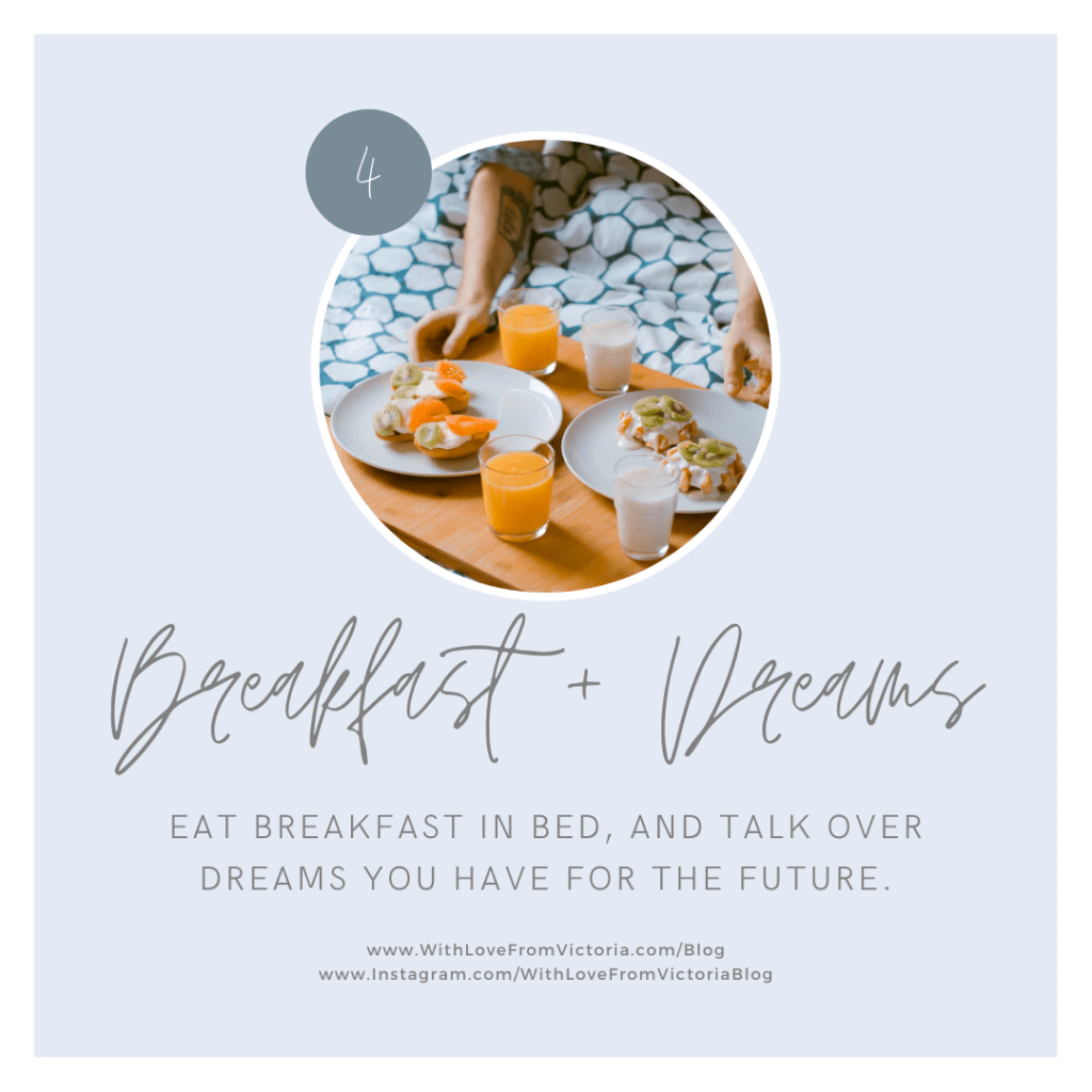 Breakfast is a perfect way to start off a beautiful day together! Start your day with something sweet or savory, and have a dreaming session together about what you’d like to do in the future.