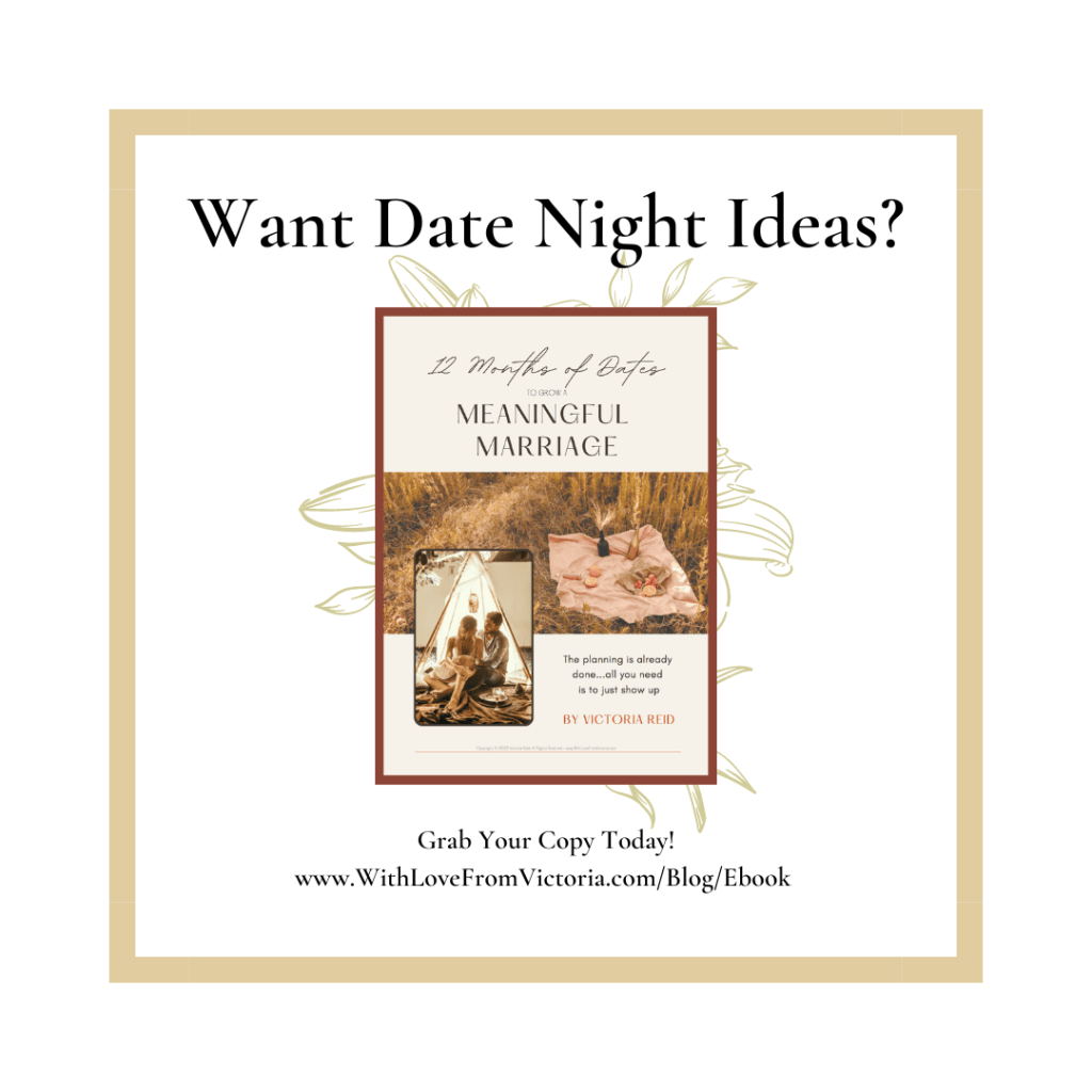 Need some new date night ideas? Grab a copy of my ebook, “12 Months of Dates to Grow a Meaningful Marriage” — an entire year’s worth of dates already planned out for you, for only $5!